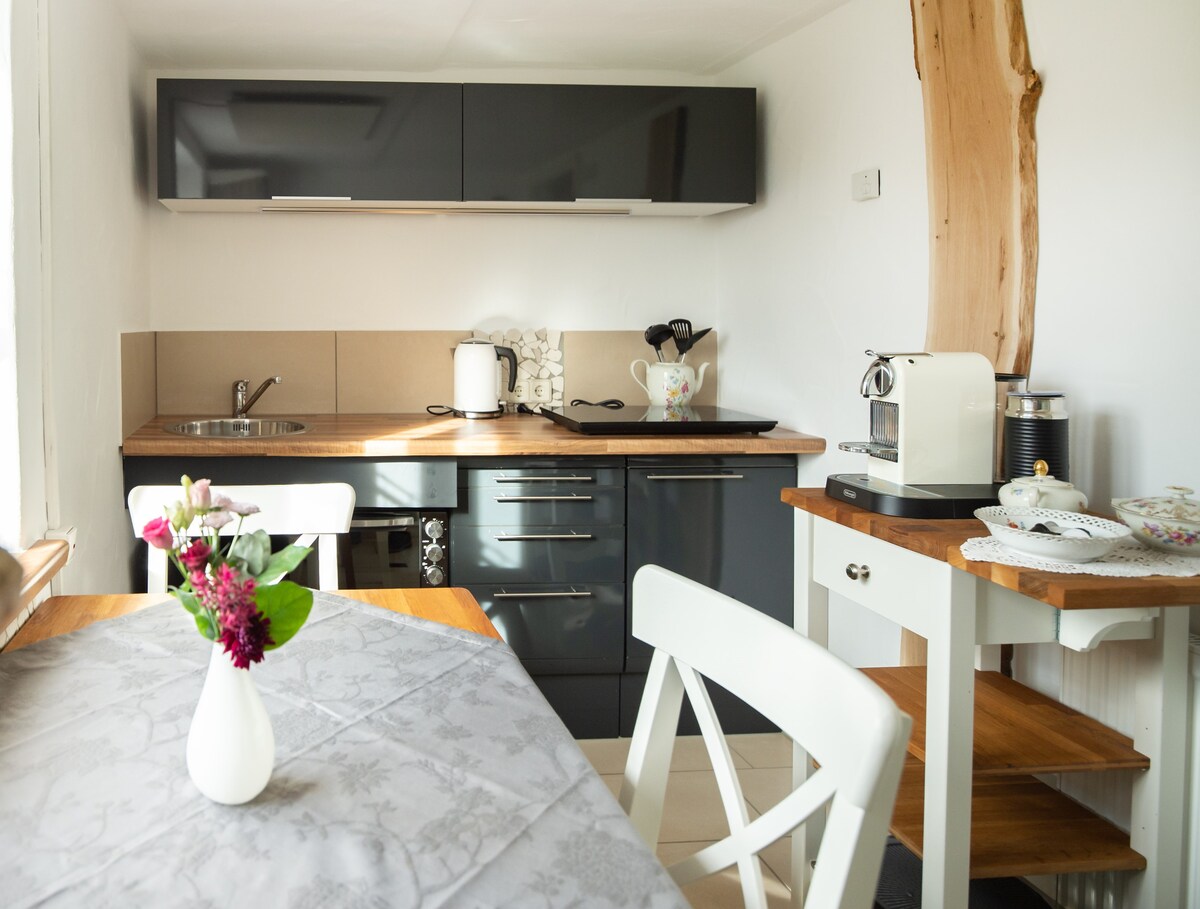 Visit us in our newly renovated vacation home on the over 1000 m² property with directly adjacent stream, covered balcony and large garden area! The 50 square meter wooden house is in a quiet location on the outskirts and was awakened from its Sleeping Beauty slumber with a lot of love for detail. Our small retreat has been completely renovated and newly furnished inside and out. Take a break and recharge your batteries with cozy evenings by the fireplace :-)