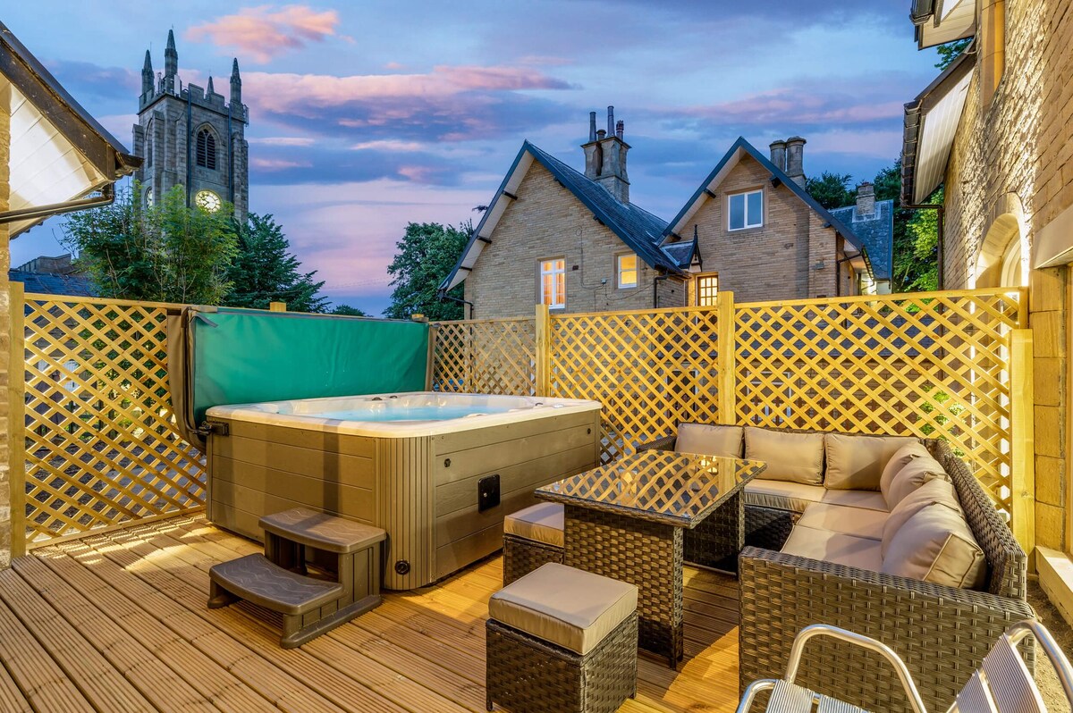 A brand new modern conversion of Grade II listed Victorian Coach house, providing accommodation for large parties up to 18 people. Located between Leeds and Manchester, 10 mins away from Huddersfield centre and 5 mins from the M62. Spectacular lounge with beamed ceiling. Spacious Kitchen and main room for 18 people to dine. Hot tub and large outdoor decked area. Plenty of free parking. Caterers and massage therapists available at cost. Ideal location for leisure activities and walks.