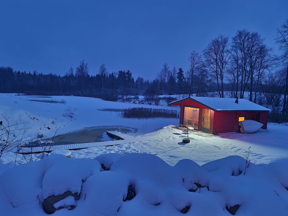 The rustic barn house offers a peaceful retreat in an authentic natural setting. About 50m away, there is a small sauna on the shore of a pond where you can jump right into the pond after the league. The hot water is when the sauna is heated, but the washing is done with a bowl and a lung, just like the old days. There is a dry toilet by the fence house and unfortunately there is no shower option. You can take water from the outside, but it's all part of an authentic, rustic experience. Suitable for those who appreciate quiet, nature, and simplicity, and are not afraid of a little adventure.