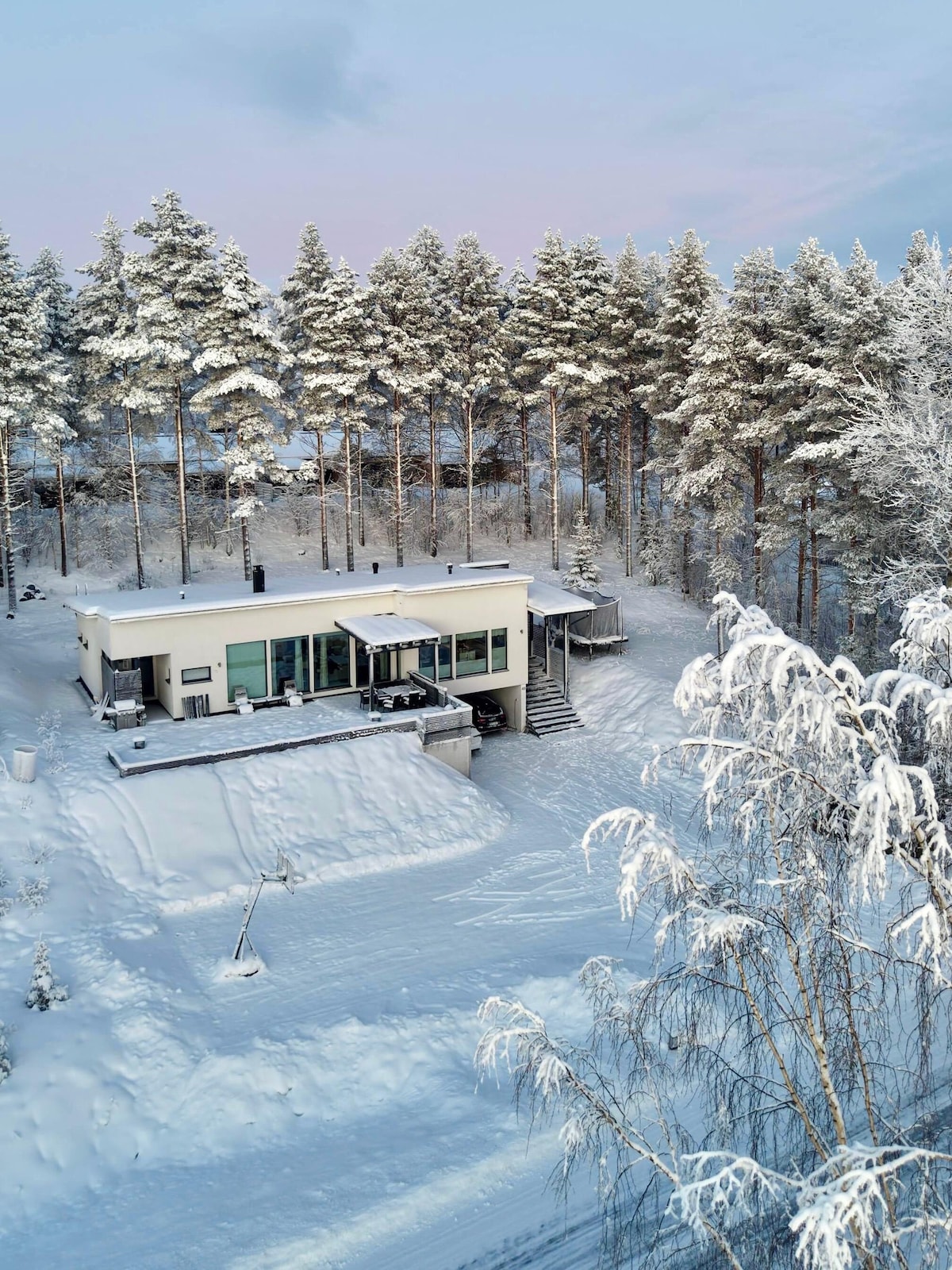 Welcome to relax at Ruska Chalets, located on the beautiful banks of the Kemijoki River, just a 20-minute drive from the center of Rovaniemi. This spacious and cozy villa accommodates up to 10 people. In the yard, you can relax in the warm outdoor hot tub and enjoy evenings by the firepit. The natural beauty of Lapland, the Arctic Circle, and Santa Claus are all within easy reach.ou are welcome to spend your holiday at Ruska Chalets. You find us IG: @ruskachalets