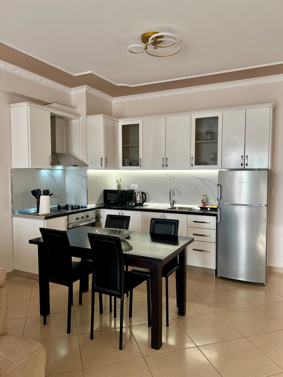 Area: Shkoder, Albania. Fully renovated apartment located in the heart of Shkoder, exactly 100 steps from the main Pedestrian street. This apartment is designed entirely to offer our guests optimal comfort. It is minimalistic and very lovely at the same time. It is your home away from home.