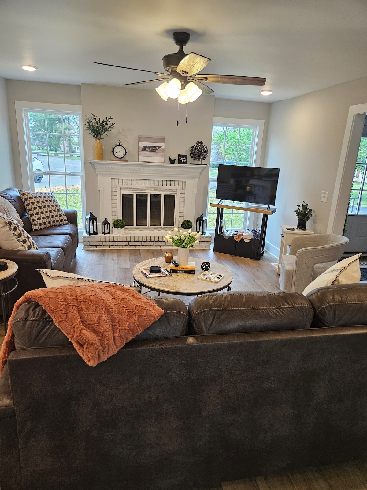 Comfortable home with deck, grill, patio table and chairs. Formal dining room with dinnerware service for 12. Separate breakfast nook. Fully equipped kitchen, and a relaxing den. Less than five miles from MTSU and close to stores and restaurants. Convenient 40 minute drive to Nashville. Perfect for temporary executive quarters, business travelers, and family get-togethers. All 4 bedrooms are on the second floor. Corn Hole for outdoor entertainment.