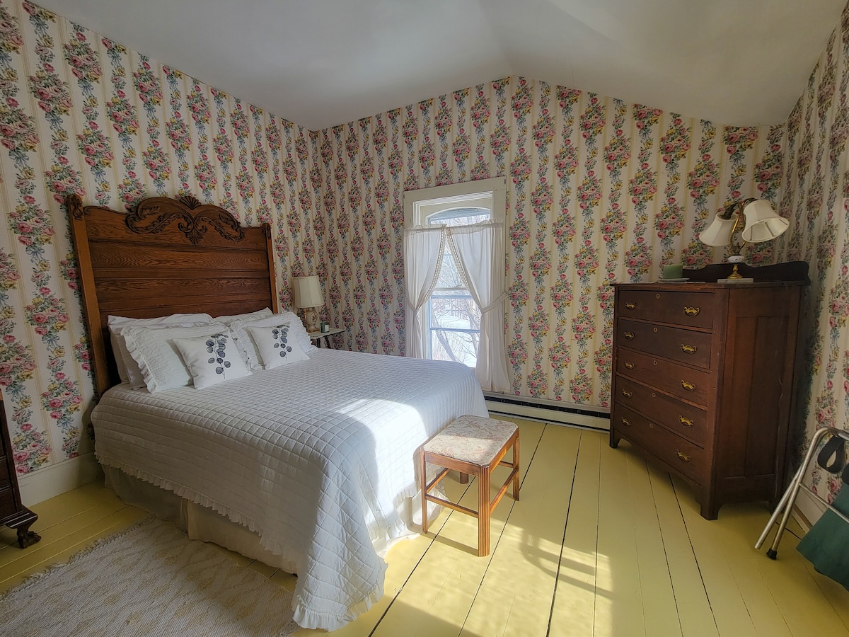 Welcome to our Victorian home that blends 19th-century charm with comfort. This suite offers two private bedrooms—one queen and one full bed—and a shared full bathroom exclusively for your group. Set in a classic Vermont village, it’s the perfect base for up to four guests to enjoy the area’s best activities: skiing, mountain biking trails, and the unforgettable fall foliage. After a day outdoors, relax in the warm, B&B-style atmosphere and soak in the quiet elegance of this historic property.