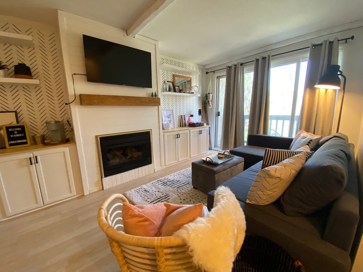 ❄️HOTEL CHIC - SKI EASY ❄️ELEGANT - COZY - SPOTLESS ❄️OUR ULTRA COZY RETREAT ❄️WAITS JUST FOR YOU ❄️PERFECT WINTER RETREAT 🏂⛷️❄️❄️❄️❄️⛷️🏂 ⛷️ 🏂Pico-5 minutes ⛷️ 🏂Killington-15 minutes ❄️❄️SUPERHOST RATED❄️❄️ ❄️Squeaky Clean ❄️Fireplace, WIFI ❄️TV in living room & bedroom ❄️Adjustable queen bed ❄️Private covered porch ❄️Keypad check in ❄️Smoke free/Pet free NOTE: Condo regs allow 2 adults(21 yrs). Can not accommodate children.