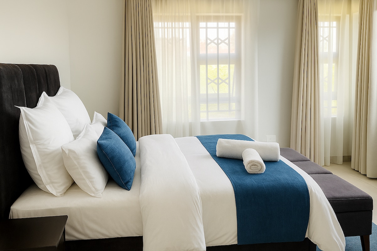 Spacious 4-Bedrooms Retreat | King Beds, Ensuite, WiFi, Solar Backup, Borehole & More. Welcome to your elegant 4-bed retreat offering everything you need for a comfortable and stylish stay: Generously-sized rooms, including a luxurious king-size master suite with an ensuite. A bright and airy lounge-diner, perfect for relaxing or entertaining Fully equipped kitchen and modern amenities. Beautiful paved courtyard, Reliable solar & borehole for peace of mind. High-speed WiFi to keep u connected.
