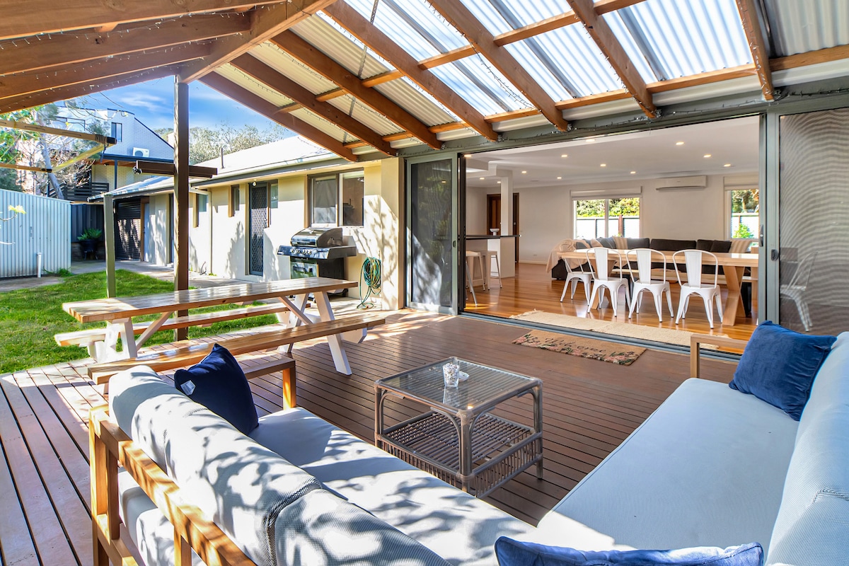 Perfect all year round, relax with family or friends in this renovated cosy beach house. Eleanor's Escape has everything you need for a relaxing beach holiday. Ideally located in a quiet street, the beach just 450m away. A great base to explore award-winning wineries, hot springs, national parks and golf courses, all a short drive away. After a day at the beach, enjoy the outdoor shower before relaxing on the deck taking in the lovely garden, playing board games or table tennis.