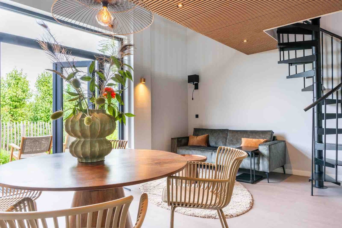 This stylishly furnished farmhouse can accommodate 6 people. The house was completely renovated in 2019 and has a very high level of finish. From the house, you have a beautiful view over the surrounding fields. The house features a luxury kitchen, bathroom with sauna and a south-facing terrace.