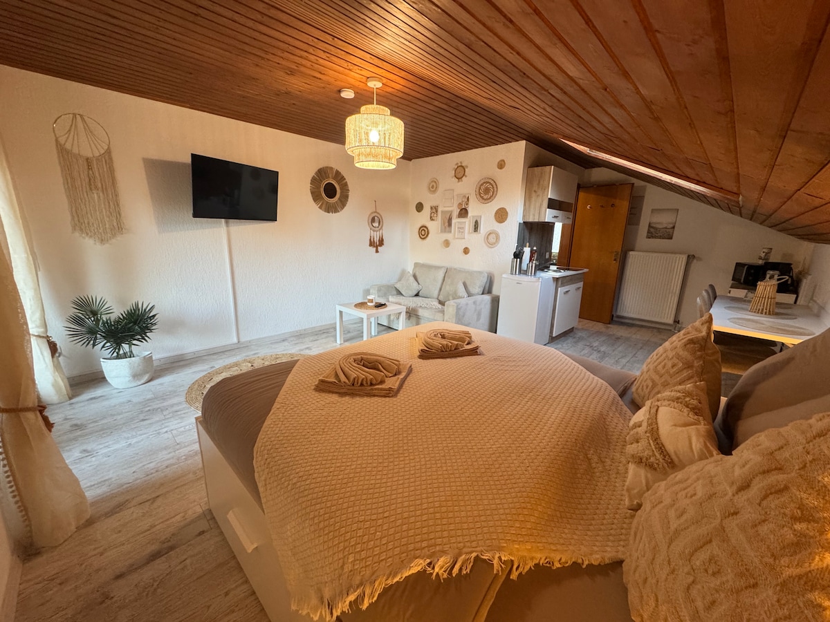 Willkommen im Boho Apartment Skye - dein Rückzugsort mit atemberaubender Bergaussicht. 5 Minuten von Salzburg, 20 Minuten vom Königssee & Berchtesgaden entfernt aber ruhig gelegen, bietet dieses stilvolle Apartment den perfekten Mix aus Natur, Erholung und urbaner Nähe. Genieße den freien Blick auf die Alpen. Die Unterkunft liegt unmittelbar an der Autobahnausfahrt A8, ist aber wunderbar abgeschirmt in ruhiger Umgebung – ideal für Reisende, die schnell ankommen und tief durchatmen möchten.