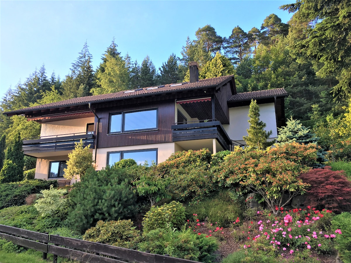 Our cottage is ideal as a starting point for hikes and as a vacation home for families with one to two children. The balcony and spacious living room offer plenty of light and panoramic views over the valley. The wild garden borders the edge of the forest, the nearest hiking trail is not a hundred meters away.