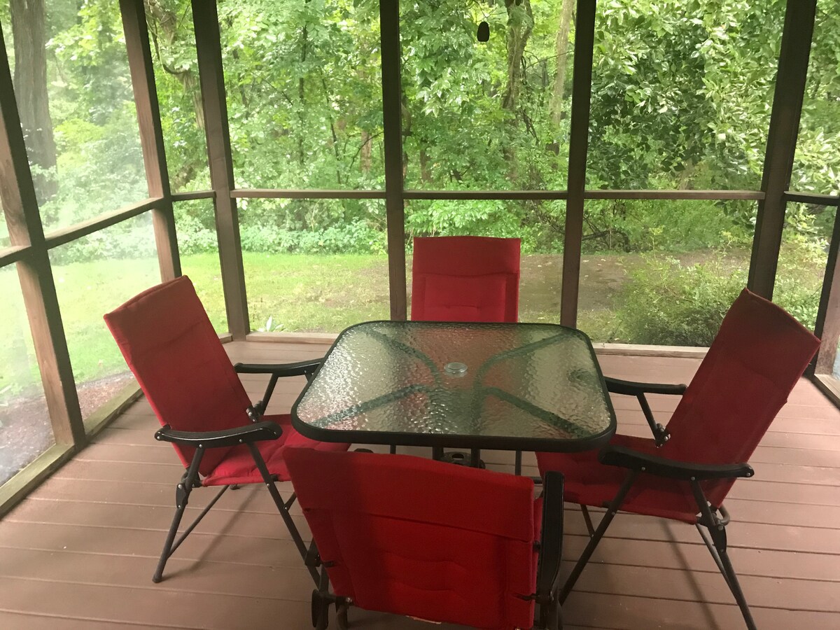 Our home is located on a wooded lot overlooking a pristine kettle pond. Access to our home requires ascending a long but gradual set of stairs followed by a second set of stairs to the entrance of the guest suite. The two room suite has a bedroom and a kitchenette with a microwave, toaster, electric kettle and mini frig. There is a French press, coffee bean grinder, tea, cups, dishes and flatware in the cupboards. It does not have a full kitchen ( no stove/ no kitchen sink)