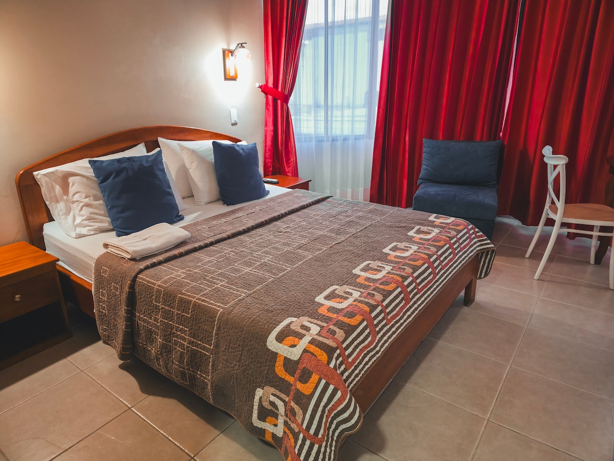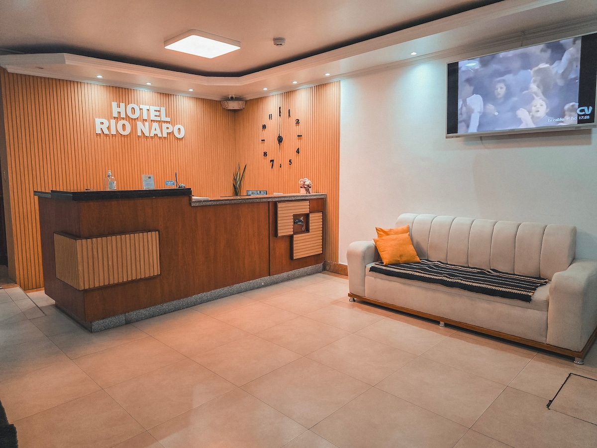 Live a relaxing experience in El Coca, gateway to the Ecuadorian Amazon. Enjoy an elegant and quiet room with air conditioning, Smart TV, wifi, coffee maker, microwave and a water dispenser. Walking distance to restaurants, gyms and the bike path, and only 3 minutes from the thermal springs. Ideal for exploring nature and relaxing in comfort.