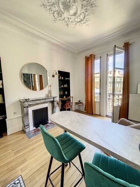 Charming newly renovated 28 m² studio, ideally located in the city center, in a Haussmann-style building. It consists of a bright main room with a cozy bedroom (140 x 190 bed) separated by a glass wall. Tasteful decoration. Ideal base for exploring Dijon, a UNESCO City of Art and History, and its gastronomy. Close-by shops and restaurants, Les Halles market (Tuesday, Friday, Saturday) City of Gastronomy and Wine: 15-minute walk.