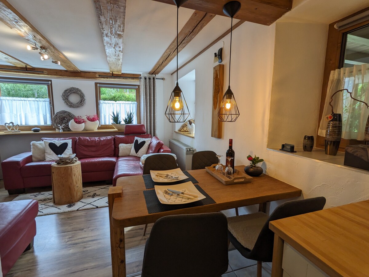 Kick back and relax in this calm, stylish and lovingly furnished space of approx. 55 square meters. The apartment is in a rural area and is in the immediate vicinity of hiking trails, forest, cross-country skiing and ski slopes. The apartment is located in the attic of a two-family house. It is newly renovated. The bathroom invites you to relax with the large rain shower. In the fully equipped kitchen, nothing stands in the way of self-catering.