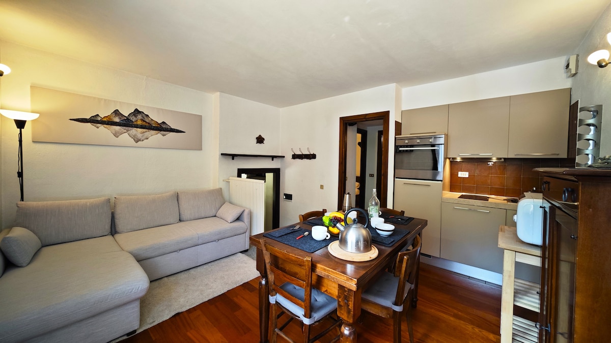 Characteristic apartment totally renovated in 2023 furnished with bespoke furniture in chalet style Double bedroom and sofa bed in the living room (4 pax in total) Equipped with every comfort: coffee pod machine, microwave, hair dryer, comfortable ski box/bike shelter. Warm apartment always exposed to the sun, with a small terrace overlooking the mountains of the area, breathtaking views Price does not include linens. It will be possible to rent it or take it independently