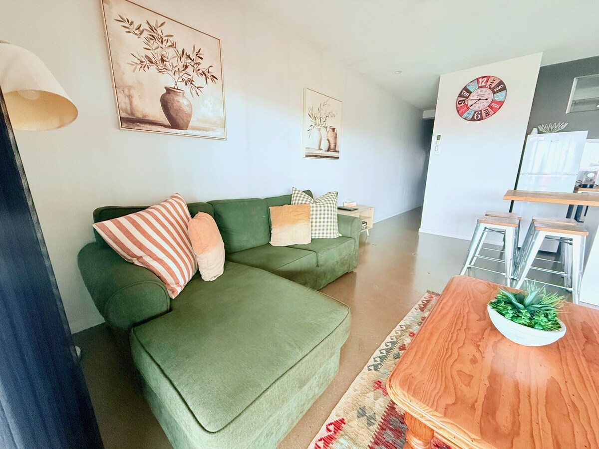 This newly renovated pad has everything you need for a relaxing and peaceful stay. Situated 10 mins walk from Coles Shopping Centre on the hill side in a safe and sort after area of town. Town is easily accessible by foot or 2 minute drive where you will find Cafe's, Restaurants and Boutique stores. Comfortable Queen Bed, linen, towels, TV, Wifi, Tea/Coffee making facilities, Toaster, Kettle, Microwave, hair dryer, iron and ironing board.