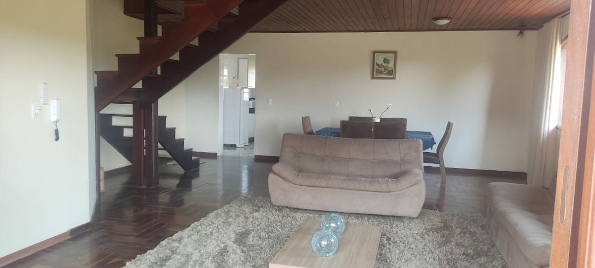 House located in the countryside, amidst lush nature, beautiful landscaping and breathtaking views, especially of a sea of mountains, sunsets and starry and moonlit nights. Cozy, reserved, safe atmosphere. Deck with whirlpool, table, chairs and barbecue. Grass court for sports. Access to forest and mountain trails. Conducive environment for couples in love. Come and rest on the lap of the Serra da Moeda. There, you must listen to the silence, even when you're with someone.