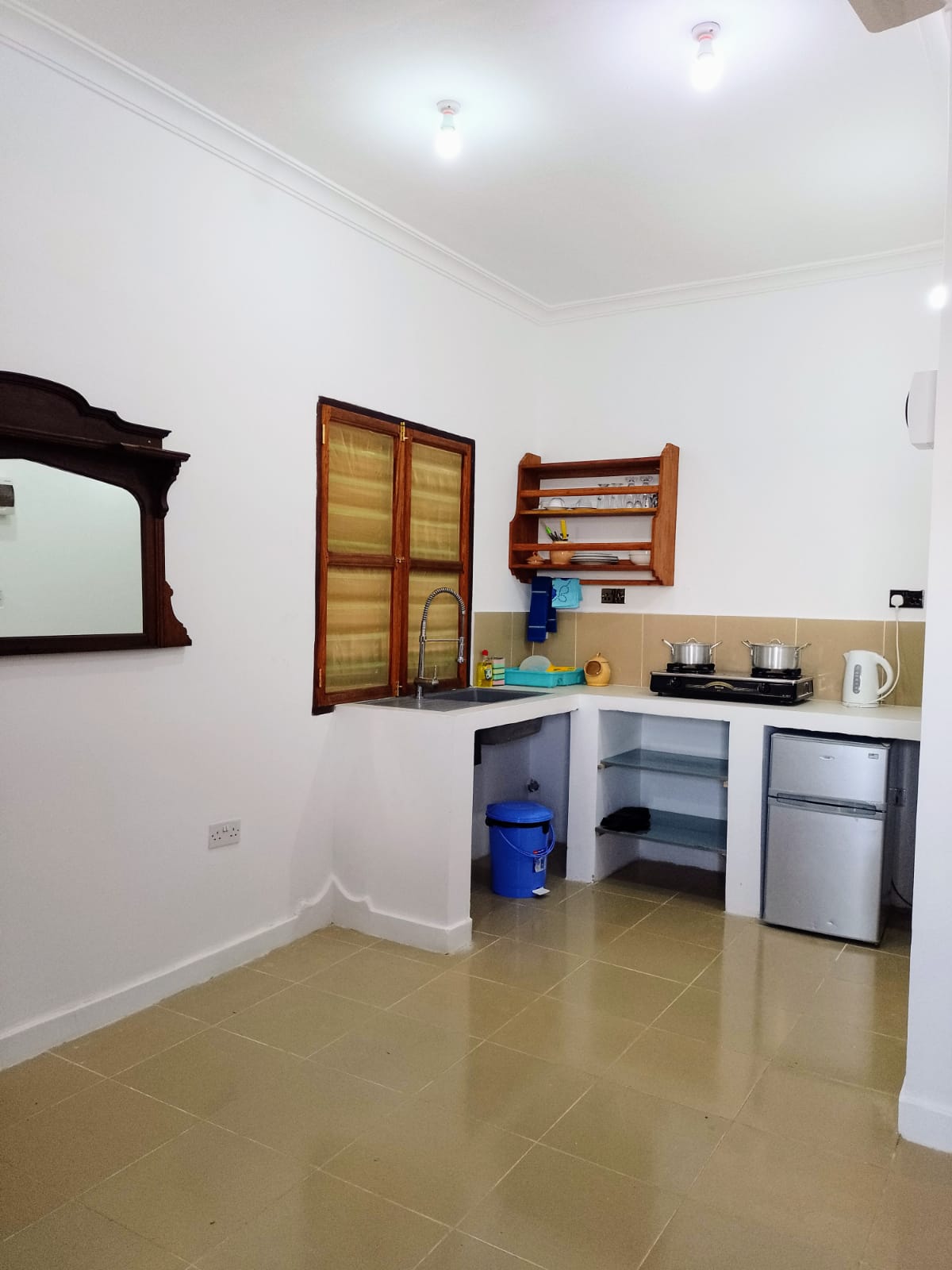 Stylish, modern unit Apartment with backup generator facing one of the most beautiful beach on Zanzibar. Being right on beach, means you can have your coffee, early morning swim and watch the breath taking sunrise. Feel free to join in the afternoon soccer game. Kite to your hearts desire. The kitchenette is equipped for easy meals but there are restaurants close by. Not for the animation type holiday maker. Free Wi-Fi unlimited usage available.
