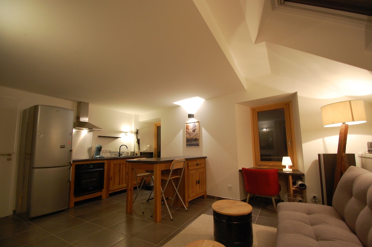 Small fully-equipped studio for weekend or week for winter sports/summer hikes. 15 minutes from La Clusaz or Grand Bornand and 30 minutes from Annecy. 2 km from Thônes (small shops/supermarket/gas station/laundromat) The studio has an equipped kitchen, a bathroom with shower, a sofa bed (1.40 × 1.95) - bed linen/towels provided. A terrace is furnished