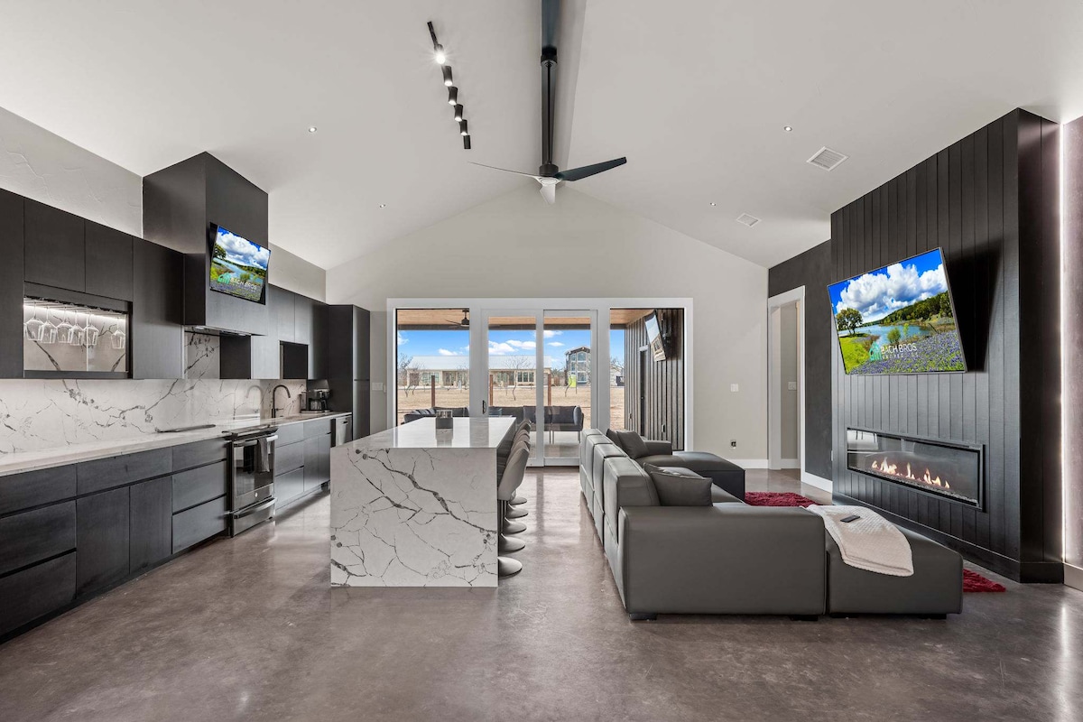 The Pedernales A-Frame epitomizes luxury... Nestled on an expansive 8-acres bordering the serene Pedernales River and positioned atop a tranquil hill, this cabin boasts sweeping vistas of the picturesque Texas Hill Country. Its interior exudes opulence with exceptional craftsmanship, acclaimed design, premium amenities, and a wealth of luxurious finishes that cater to even the most discerning tastes. We look forward to having you...