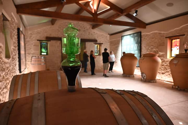 Wine tasting from casks and amphorae