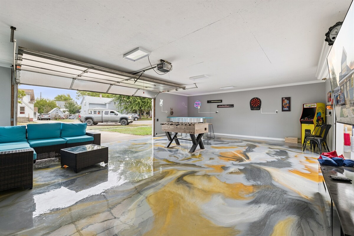 Newly renovated 4BR/2BA home near Lake St. Clair! Sleeps up to 12 with 1 king, 2 queens, and a full + trundle. Features a modern kitchen with brand-new appliances, huge game room with arcade & ping pong, and spacious living areas. Relax year-round in the hot tub, gather by the fire pit, or let kids & pets play in the gated backyard. Pet-friendly and perfect for families, groups, or lake getaways!