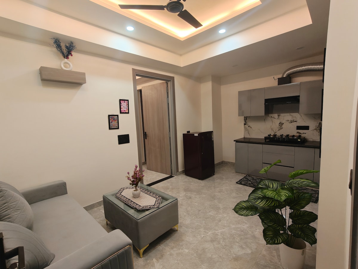 Above the city on the 10th floor, it's your 1 BHK studio that believes in two things: good vibes and great views. Wrapped in greens, soaked in height, and styled to relax, this is your private escape between Dwarka & Gurgaon super close to the Delhi International airport. Perfect for couples, tourists, corporate knights, staycations or meetups.