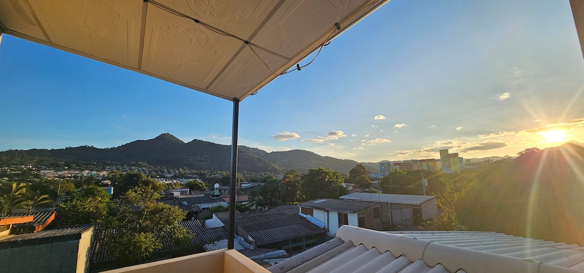 Wake up to sunrise, unwind with sunset. Enjoy coffee on the 360° rooftop with stunning mountain views. What you’ll love: Rooftop with sunrise & sunset views Coffee + fast WiFi (great for work) AC in every room Safe, central location near malls, restaurants, and Historic Center Perfect for business, travel, or a quiet escape — comfort and views at one of San Salvador’s best values.