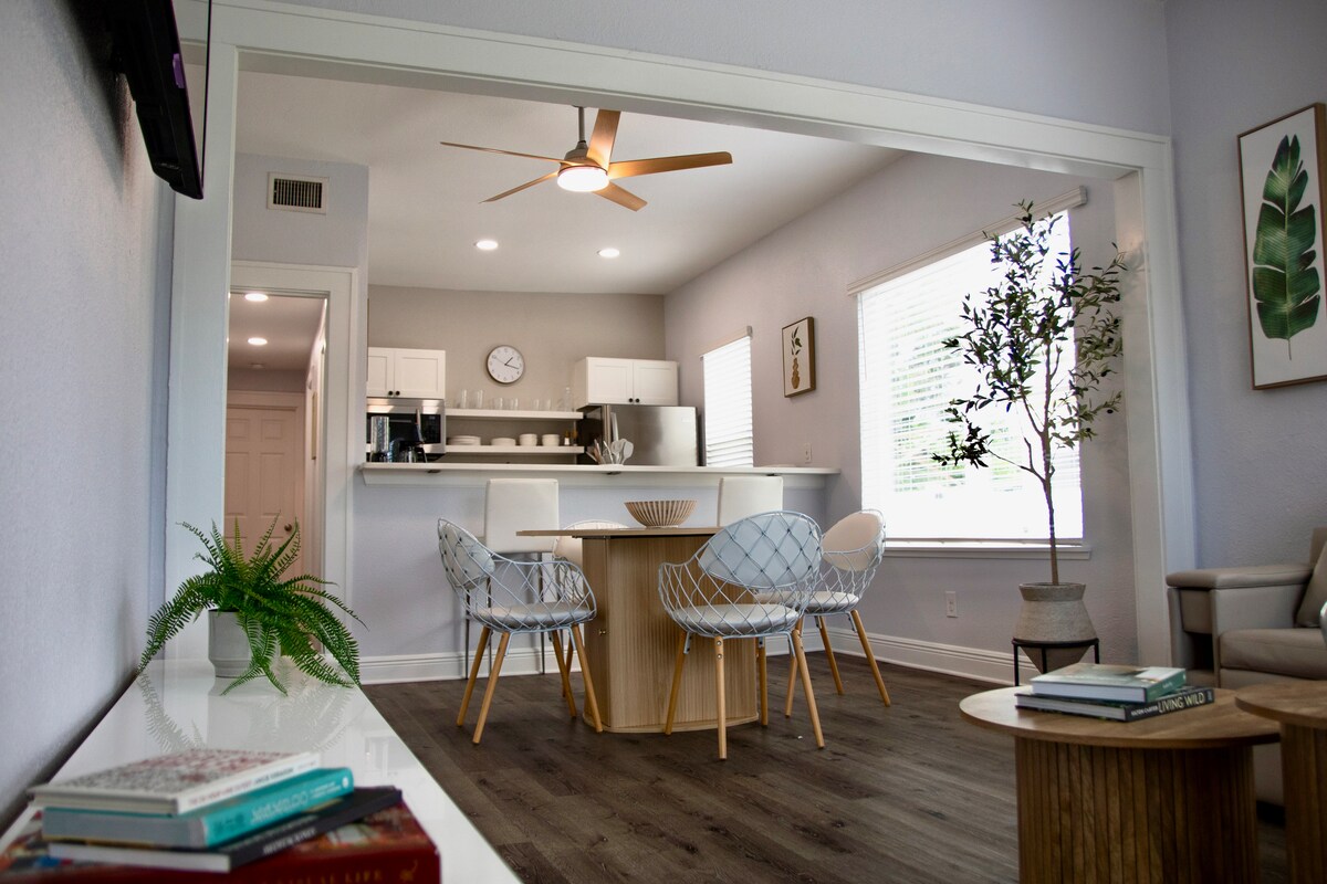 Welcome to our charming guesthouse in Riverside Heights, a safe and centrally-located neighborhood — 10 minutes from Downtown Tampa. This unique retreat for two has tropical vibes, a loft sleeping area, a well-stocked kitchen, and a private patio. Newly built from floor to ceiling, it is filled with stylish decor and luxurious furnishings. Your hosts include a Tampa native and food writer which means you’ll get the best recommendations on things to do and places to eat!