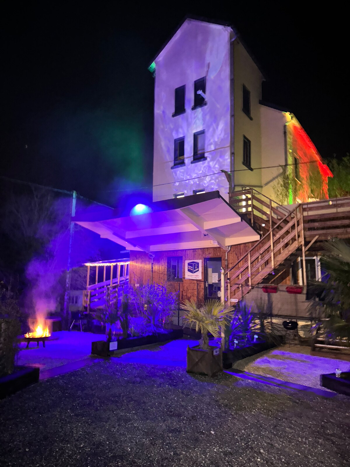 Unusual night in a former heliport with pool