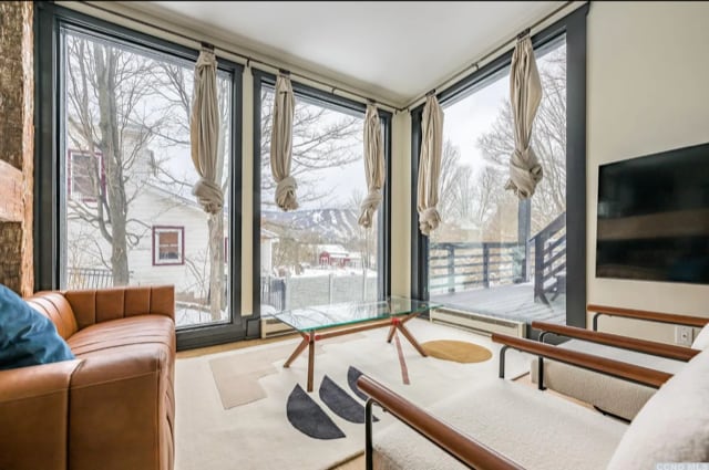 Inspired by their travels in the Swiss Alps, the hosts of the Mountaintop Chalet invite guests to their peaceful alpine guesthouse atop a mountain in the Northern Catskills. Nestled on a quiet, private road, the Mountaintop Chalet is just an 8 minutes drive to downtown Windham, NY, 10 minutes to Windham Mountain and 18 minutes to Hunter Mountain. This tranquil yet accessible setting makes it the perfect escape for couples, families and friends. Follow on Insta at mountaintop_chalet.