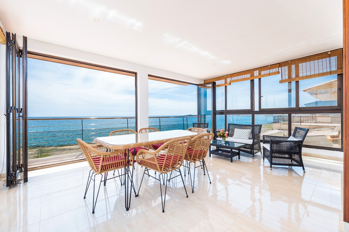 Our house combines modernity and functionality. Most notable perhaps is that is located beside the sea (30 meters) and in a very quiet area. The famous beaches of Es Trenc and Sa Rápita are just 2 km from the house. Furthermore, there is a bus s