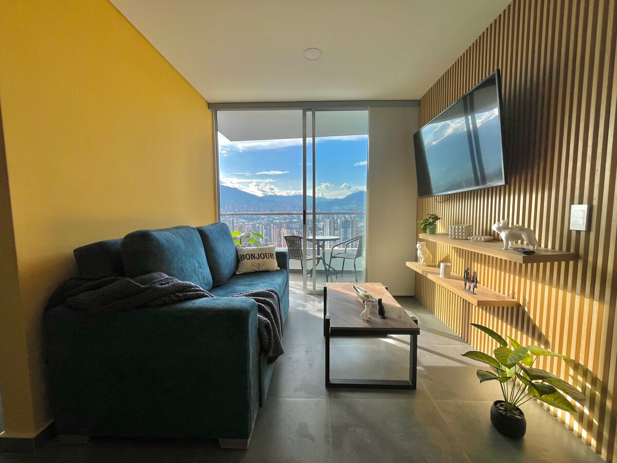 This cozy apartment on the 31st floor offers a bedroom, a sofa bed, a fully equipped kitchen, and a balcony with breathtaking views. It’s perfect for relaxing or exploring the area. About the Area: Located in Sabaneta, a vibrant neighborhood known for its charming parks, diverse dining options, and convenient access to shopping and public transportation. The apartment is currently located in a completely new building, so some common areas are not ready.