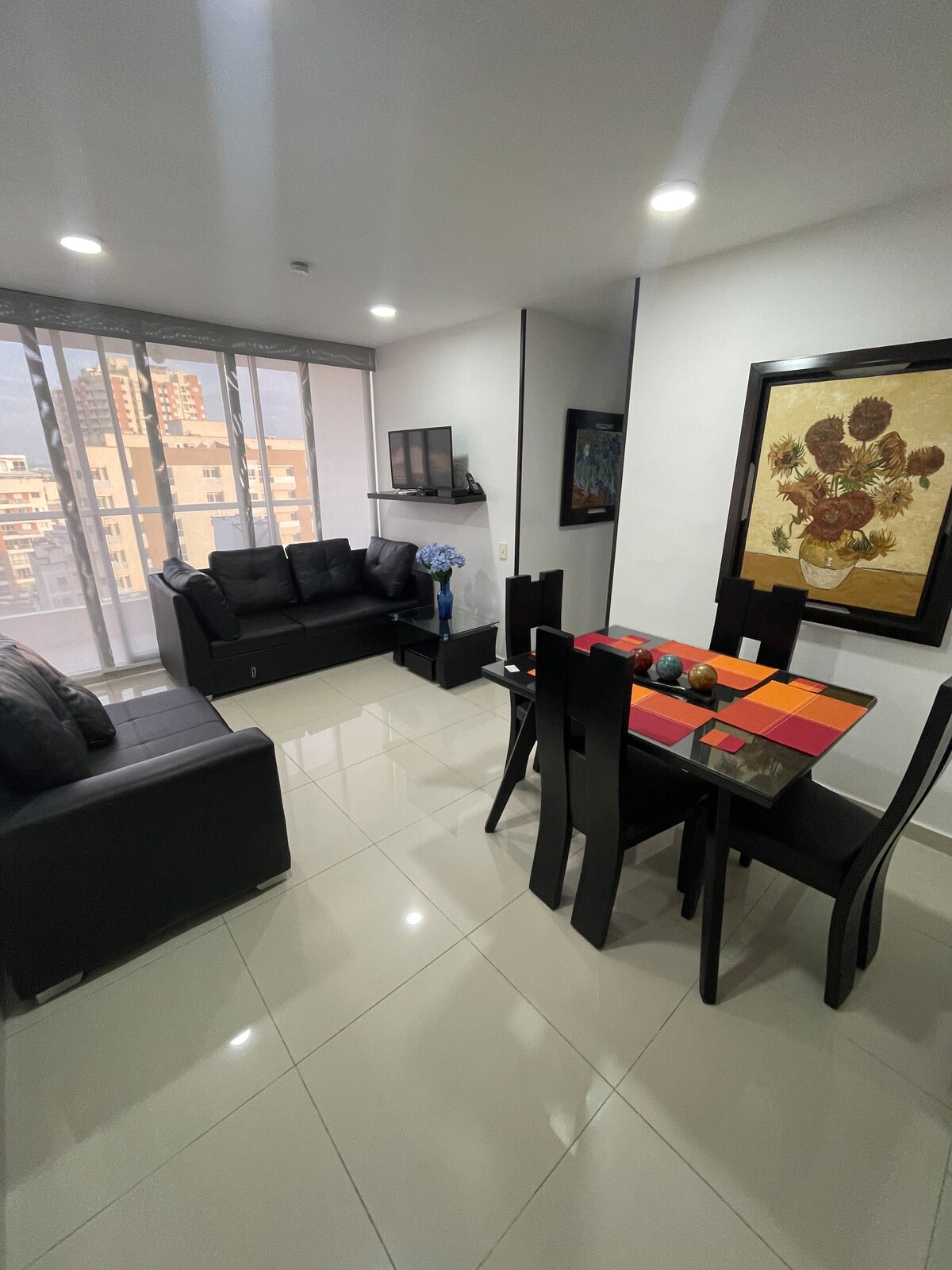 Modern apartment located in one of the most exclusive neighborhoods in Barranquilla. *Flexible check-in and check-out *1 bedroom with queen size bed and air conditioning. *Living room with sofa bed and air conditioning. *Fully equipped kitchen with utensils, basic appliances and washing machine. *Swimming pool, sauna, Turkish bath and rooftop terrace. *Smartfit gym nearby. *Free private parking. *Close to VIVA and Buenavista shopping centers, and to the main clinics and tourist areas.