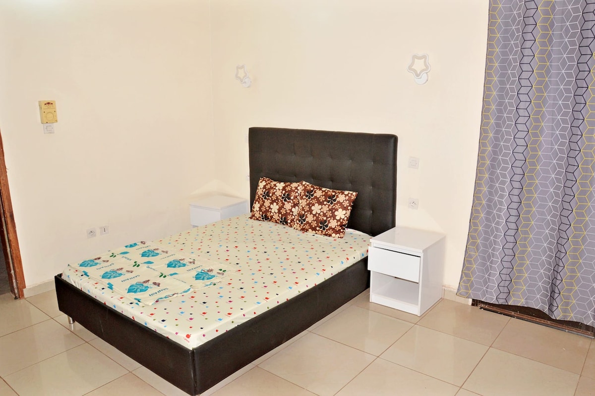 This beautiful brand new apartment located close to the Tour de l'Afrique in Bamako will enhance your professional and personal stays. Stay in a peaceful, welcoming, warmly and tastefully decorated building. Spacious, elegant and unique, you will feel like you are in a dream. No more worries in the event of a power cut, solar panels take over for lights, brewers, Internet, TV.