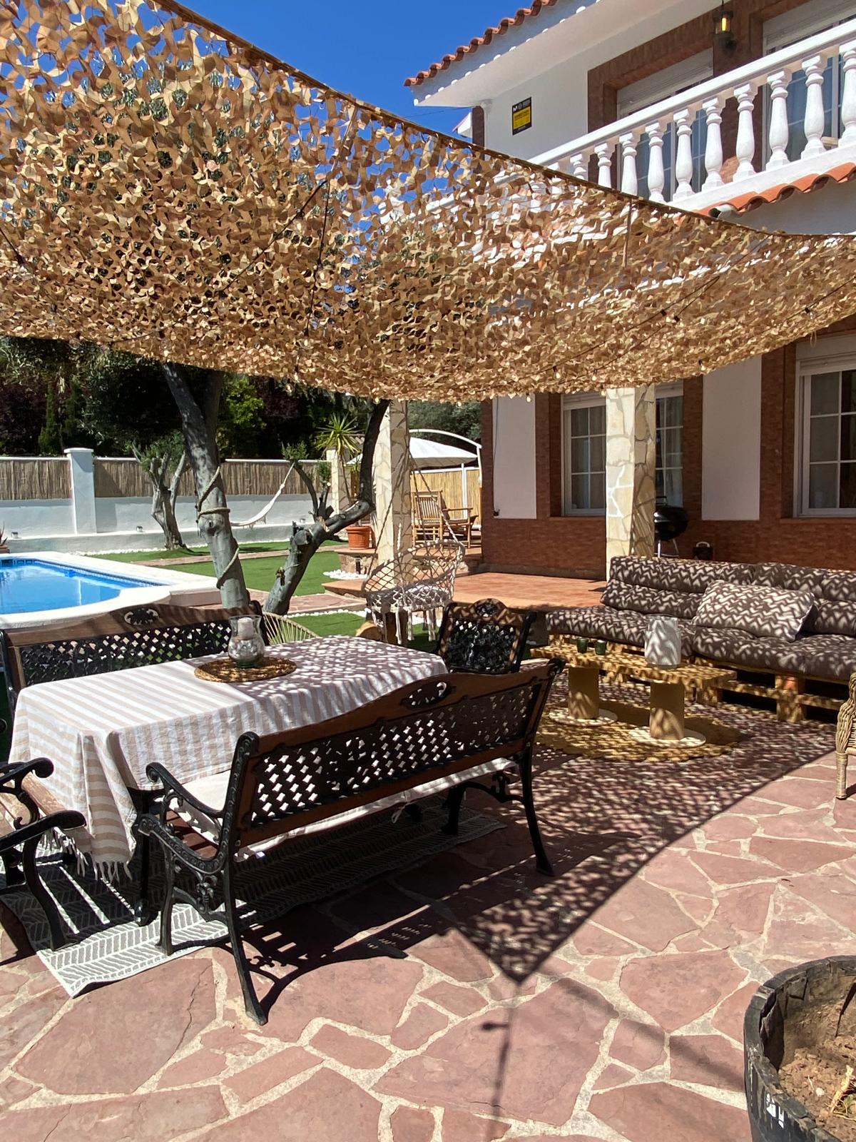Comfortable chalet in a quiet area of La Canyada, 6 min. from the AIRPORT and FERIA DE VALENCIA, 10 from the capital and 25 from the beaches. With 4 bedrooms, 2 bathrooms, a cozy living room, a dining room, and a fully equipped kitchen. Garden with beautiful pool (June to September) . Supermarket 5 min. walk. Perfect combination of rest and proximity to the city of Valencia where you can take multiple tourist tours: Old Town, City of Arts and Sciences, Oceanographic, etc...