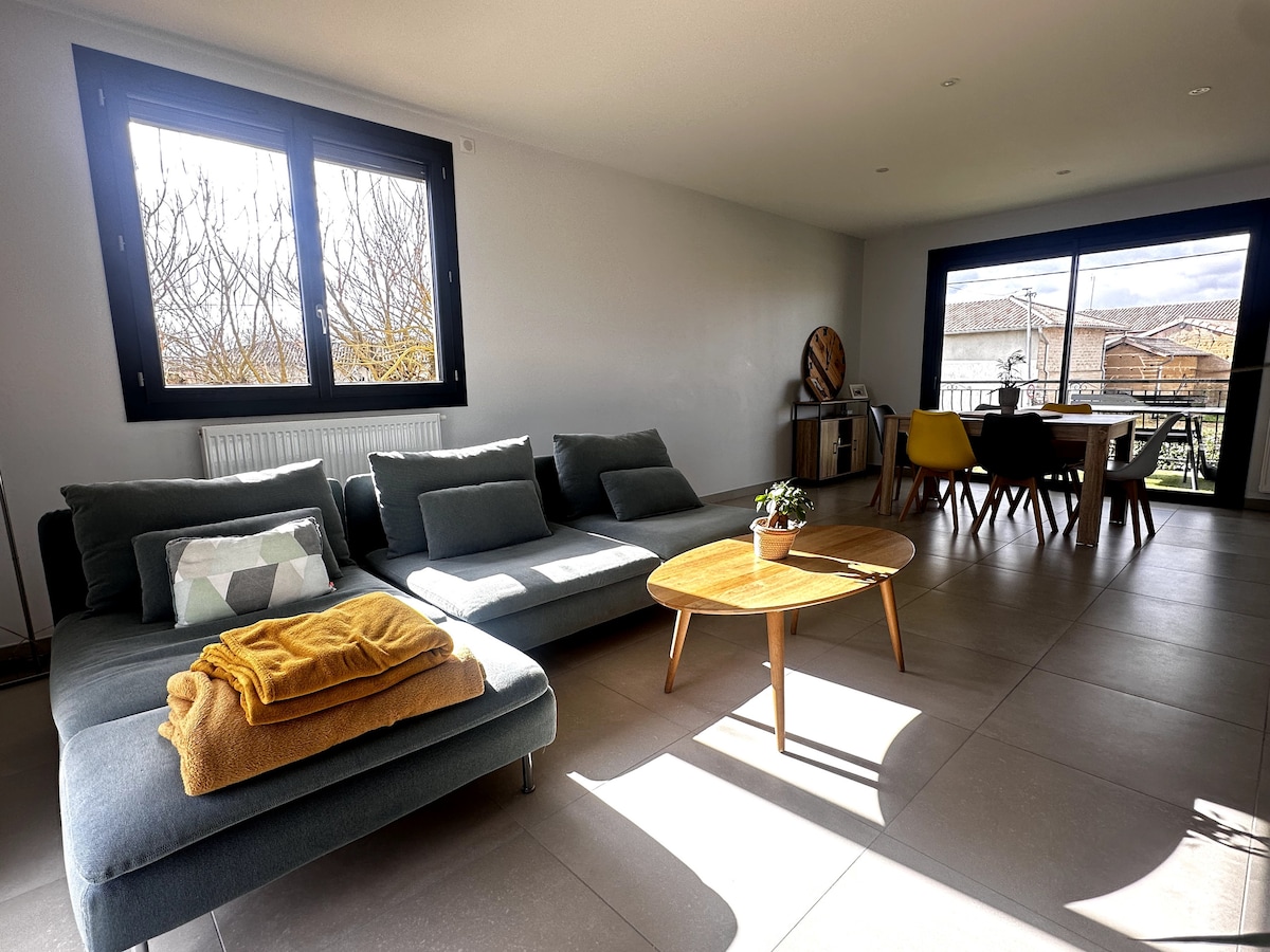 Come and enjoy this cozy 35 m2 apartment with its pretty terrace. Ideal for lovebird couples or a solo migratory traveler. "Au Creux Du Nid" is perfect for a romantic getaway or just a break. Accommodation located in the center of Replonges "Le Creux Sector" - Amenities near the property (bakery, tobacco/newsstand/grocery store...) - 5-minute drive to Macon - 2 minutes to the A40 (➡️Paris, Geneva) and the A46 (➡️Lyon, RCEA)