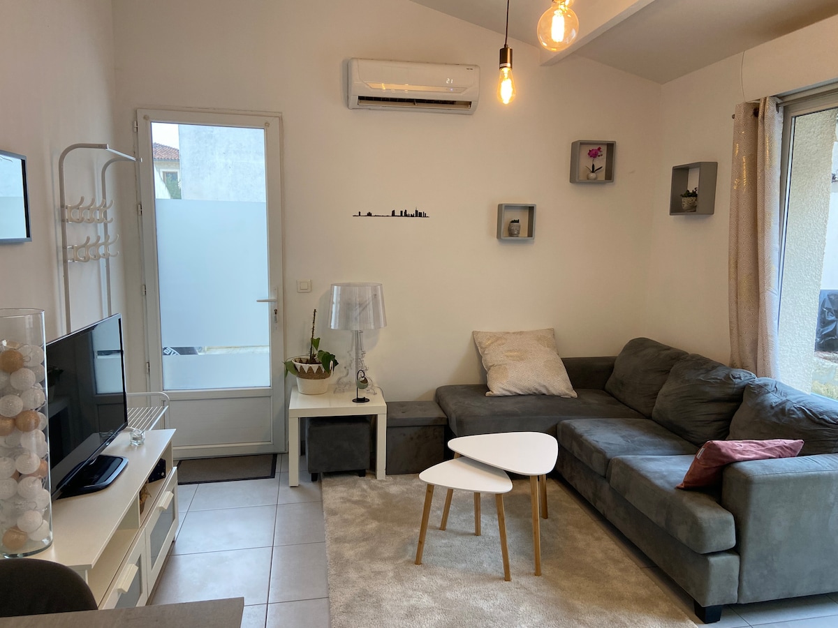 ⛱ Cozy studio, completely renovated in a very quiet & pleasant residence ⛱ ▸ 3 minutes from the beach with sea view from the balcony Private, fenced & secure▸ parking: space to park 2 cars ▸ Fully equipped: Wi-Fi, Air Conditioning, TV, Washing Machine ▸ Linens provided: sheets, towels, blankets ▸ Close to shops & restaurants (Lidl, Super U, bakery, tobacco,...) Flexible checkout▸ times ▸ Ideal for 3 people (2 adults & 1 child)