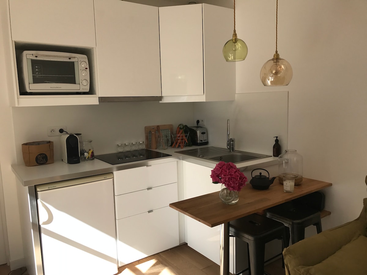 entire place 2 guests 3rd floor without elevators of a residence in the heart of Saint Briac The apartment is very bright, dual-aspect and very functional, composed of an entrance, kitchen, living room, 1 bedroom and 1 bathroom (bath) many shops nearby it's just a 15 min walk to the beach, beautiful walk around, golf, balcony emerald, nessay castle etc.