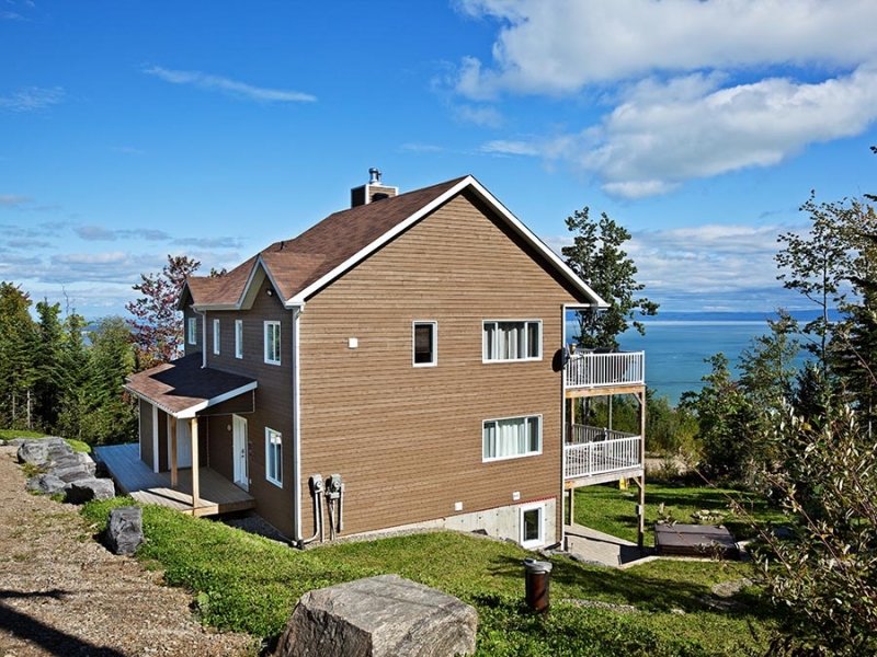 Located on a private road, beautiful country house with spectacular views of the St. Lawrence River. Cathedral ceiling with double-sided fireplace. The large 28-foot canopy and 2 bedrooms face the sunset. High-end appliances. Wooded and private 140,000 sq. ft. lot with access to a small lake. Natural skating rink in the winter. Outdoor terrace with BBQ. Outdoor fire pit. A property with a unique character. Non-smoking, no pets 3-season veranda