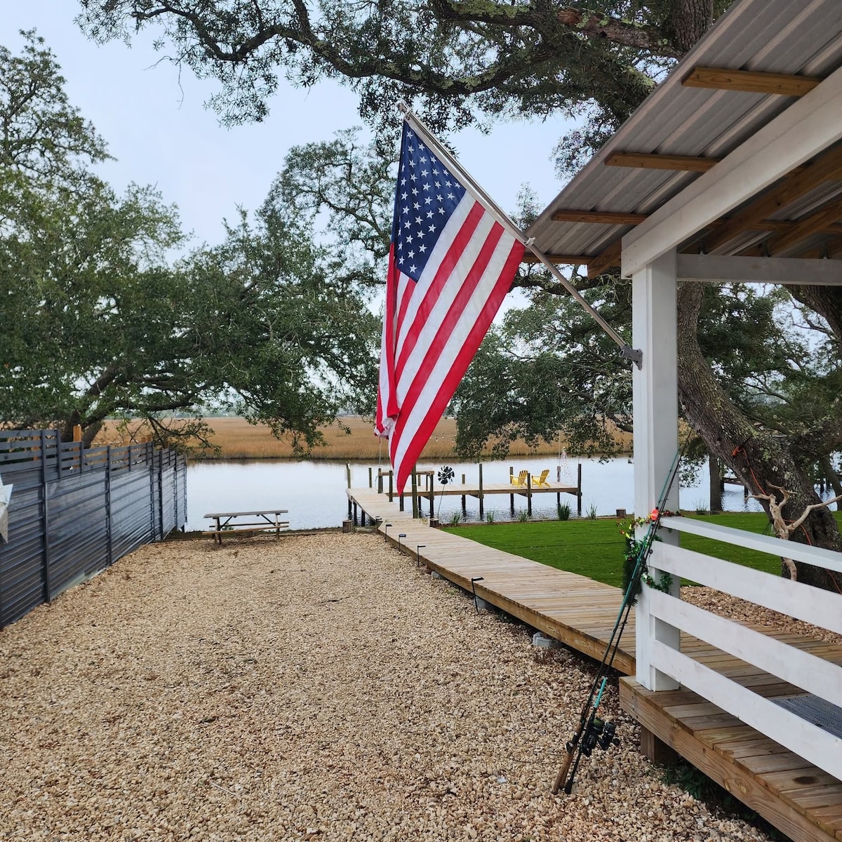 Enjoy a tranquil getaway in this cozy and comfortable studio cottage overlooking the water. Are you working remotely and looking for the perfect retreat space? A couple looking to leave it all behind for a bit and recharge? Come and enjoy the peaceful sounds of happy birds and whispering pines, all while being a short 15 minute drive away from the Gulf of Mexico and its white sand beaches. This private and peaceful space surrounded by Mother Nature invites you to relax and unwind.
