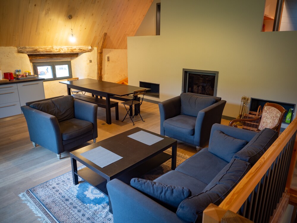 This spacious barn, tastefully renovated, will enchant you with its location in the heart of nature, in a preserved setting. The 28 m² terrace offers a unique panorama of the forest, you are lulled by the sound of the stream below. No TV here, but books. Every detail has been carefully thought out, everything has been carefully selected. This 112 m² accommodation, fully equipped, with 2 double bedrooms, a large living room with insert, a beautiful garden, is a place where time is suspended. Not overlooked.