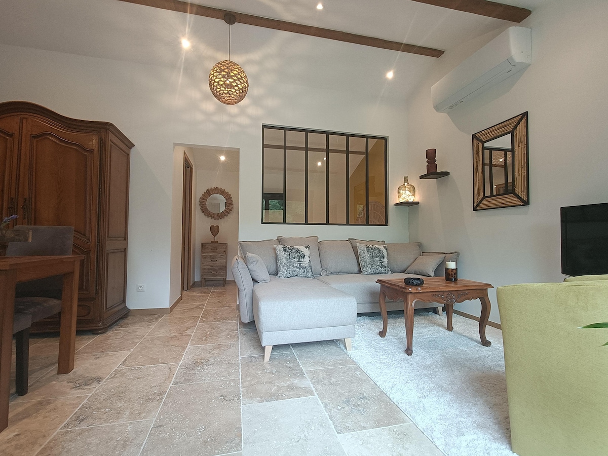A true haven of peace in the heart of the Ardèche countryside, 5 minutes from the beaches of the Ardèche and all sports and cultural activities: canoeing, tree climbing, Chauvet cave, Aven d'Orgnac, Madeleine cave, hiking etc. In a century-old Provençal farmhouse, this beautiful, fully renovated and equipped outbuilding will enchant you with its calm. OPEN ALL YEAR ROUND You have at your disposal in private: Hot tub BBQ grill Dishwasher Air-Conditioning Terrace TVs Free wi-fi