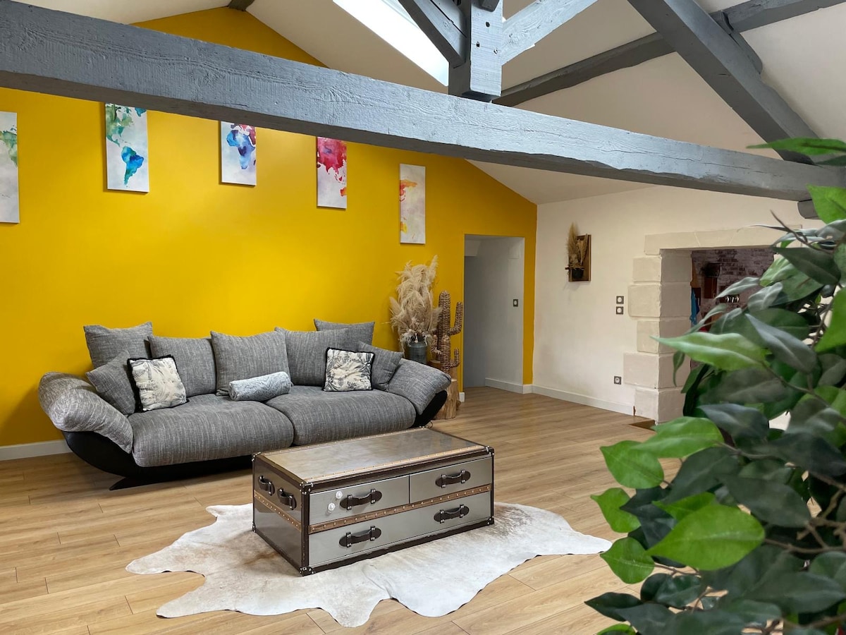 Composed of a large cozy living room with a large sofa bed and a real dining room, a bedroom with a double bed, separate bathroom and toilet. Functional and equipped kitchen that will allow you to have lunch and cook easily. Small snack offered on the 1st day: tea, herbal tea, coffee, madeleines. Towels provided, bed made on arrival. Large storage closet to store your large suitcases and personal belongings.