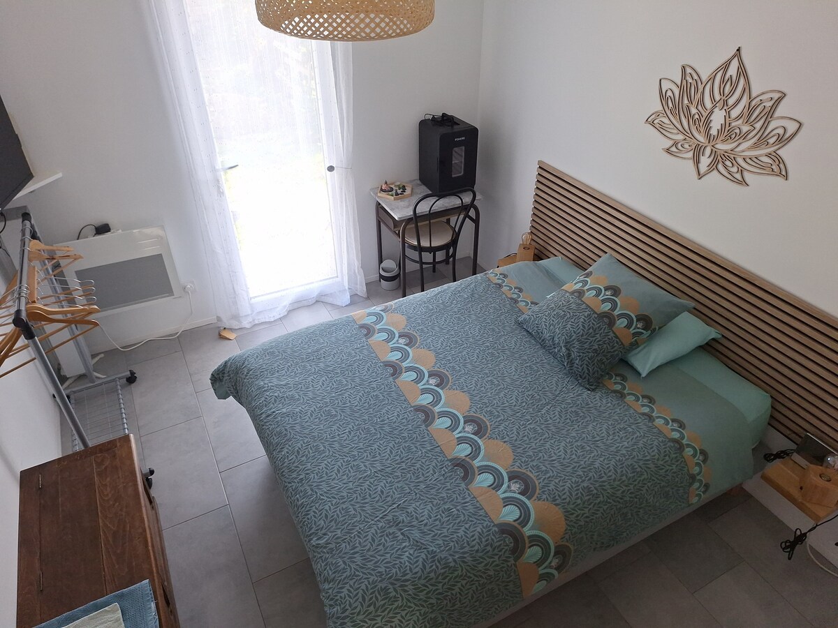 Quartier calme, à proximité commerce ( 1km) et plage (3 km) Dépendance neuve cocooning(27 m2) avec accès privée. Composée d'une chambre (lit 160*190) TV, salle d'eau avec WC, et coin repas (réfrigérateur-congélateur, évier, four multifonctions, plaque induction à l'exterieur, machine à café dolce gusto etc...) jardin piscine parking, wifi .