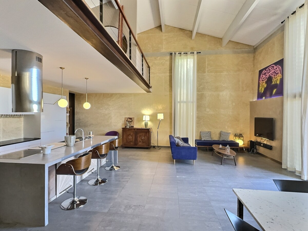 Maison Emye, an authentic soul and a place of character in the heart of Montpeyroux. Discover a bright kitchen that serves two inviting levels. It reveals a bathroom with a large bathtub, followed by a spacious living room with exposed walls, a high ceiling, a sofa bed and a quiet sleeping area. There is also a wooden table and, finally, a secluded terrace for a dip under the stars. Upstairs, every detail evokes the tranquillity of an elegant suite, complete with a video projector and a shower for two.