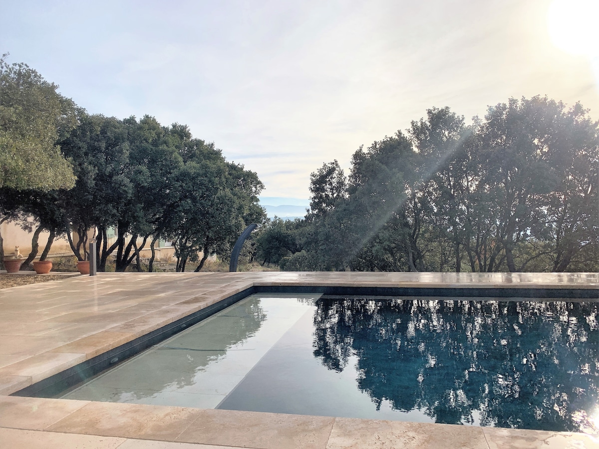 Very pleasant, fully renovated and fully air-conditioned, single-storey architect’s house on a quiet 3,000 m² property, with a 9 x 3 m swimming pool heated in spring and autumn, 2 spacious bedrooms, a fully equipped kitchen, separate toilet, a walk-in shower room with travertine throughout (including all floors and terraces), a covered outdoor lounge area, a gas barbecue and parking. Bed linen, towels and pool towels provided Between Gordes and Saint-Saturnin-les-Apt, ideally located for exploring the Luberon
