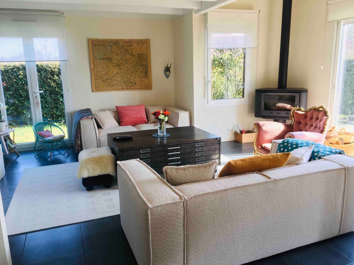 Linge de maison (lits faits) et ménage compris. Bienvenue dans notre villa contemporaine de 110 m², classée 4 étoiles, climatisée, avec piscine chauffée. Nichée dans un écrin de verdure, dans le secteur Hossegor, Seignosse. Idéale pour des vacances en famille ou entre amis. Vous serez accueillis par Catherine de la Conciergerie de l'Etang Blanc qui sera disponible si besoin tout le long de votre séjour. Heures d'arrivée et de départ flexibles hors juillet/août, n'hésitez pas à demander.
