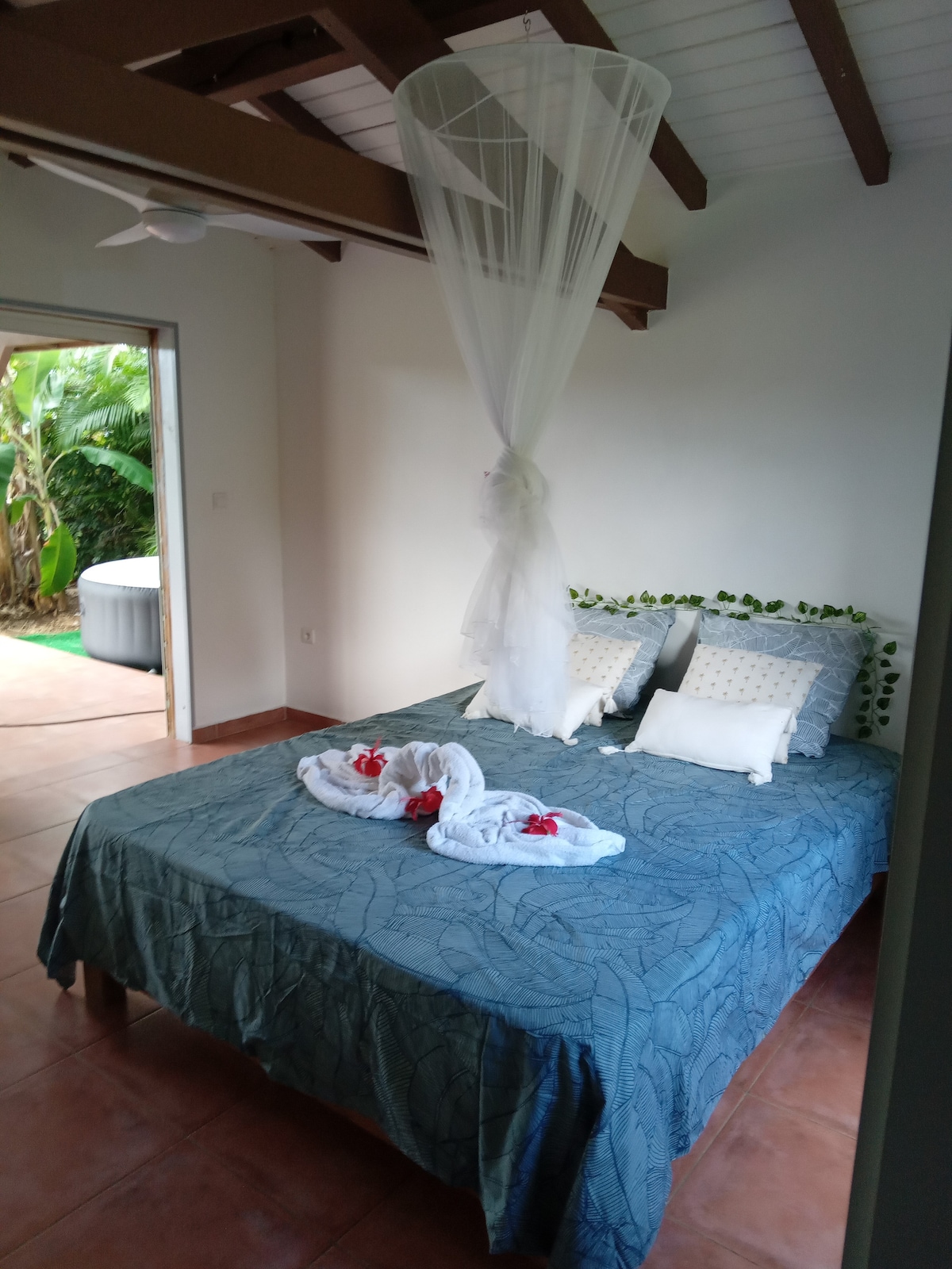 Chérie Coco... Quiet and relaxation in this real Creole hut nestled in a tropical garden overlooking the Grand Cul de Sac Marin, idyllic atmosphere and change of scenery guaranteed! After a day of discovery on our wonderful island, what could be better than a moment of relaxation in a private spa within the local vegetation and in the utmost privacy? This elegantly equipped wooden hut offers all the equipment necessary to guarantee an unforgettable stay.