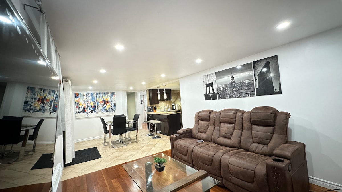 Welcome to our 2 Bedroom Basement Suite in the ❤️ of Laval! Quiet, family-friendly, calm neighborhood to enjoy independence! Central location to most stores! Includes: 💎 2 Beds (1 King, 1 Queen) 💎 Well lit - dimmable and smart lights 💎 55" smart 4K TV 💎 Outdoor 2 cars parking 💎 1 Gbps Wi-Fi internet 💎 Washer-dryer on request 💎 Coffee, arcade basketball, puzzles to enjoy! Additional services 💎 Outdoor pool 16x32ft 💎 Charcoal or Gas BBQ 💎 Bedding (Sheets, Towels, Pillows)