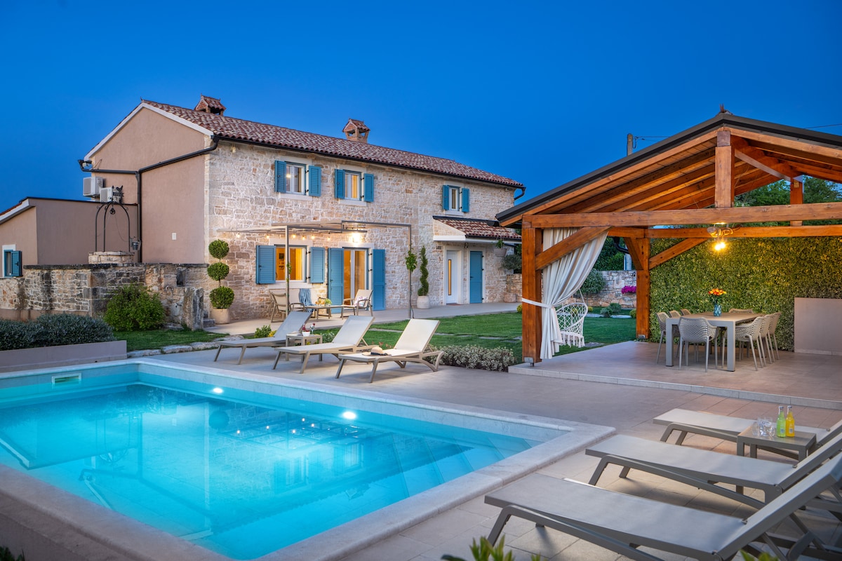 Authentic Istrian stone house built in 1922. This house is fully renovated and equipped to provide you all you need. Modern interior, fully equipped kitchen, relaxing living room, spacious bedrooms with private bathroom, an outdoor dinning area with grill, private pool and parking on the property. Each room is carefully designed by our designer. All this will afford you enjoy your holidays and fill up your batteries.